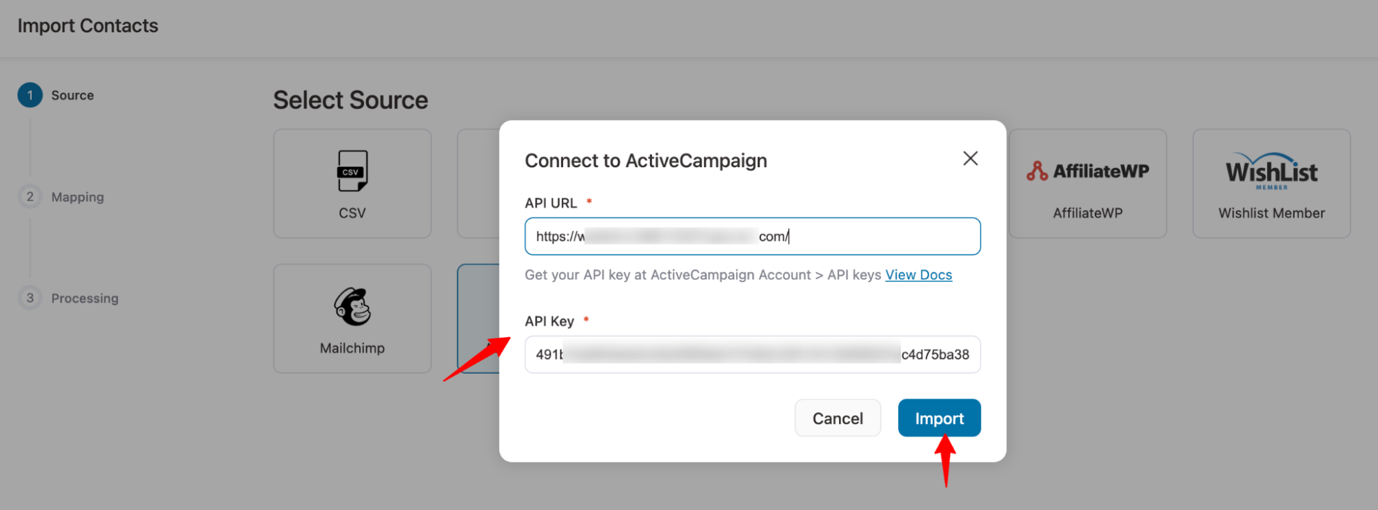 Step 2: Select ActiveCampaign as the source