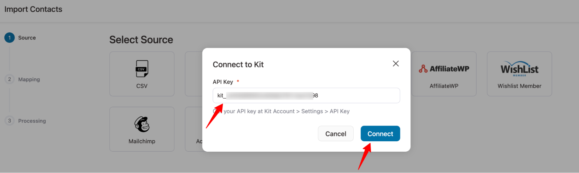 Follow the step-by-step instructions to import your contacts from the Kit plugin into FunnelKit Automations.