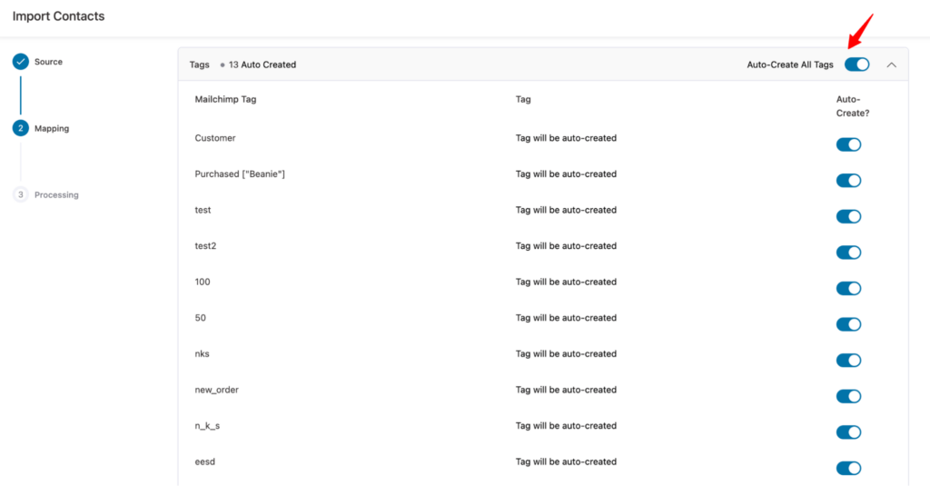Next, you can automatically create the existing MailChimp tags and lists in FunnelKit Automations.