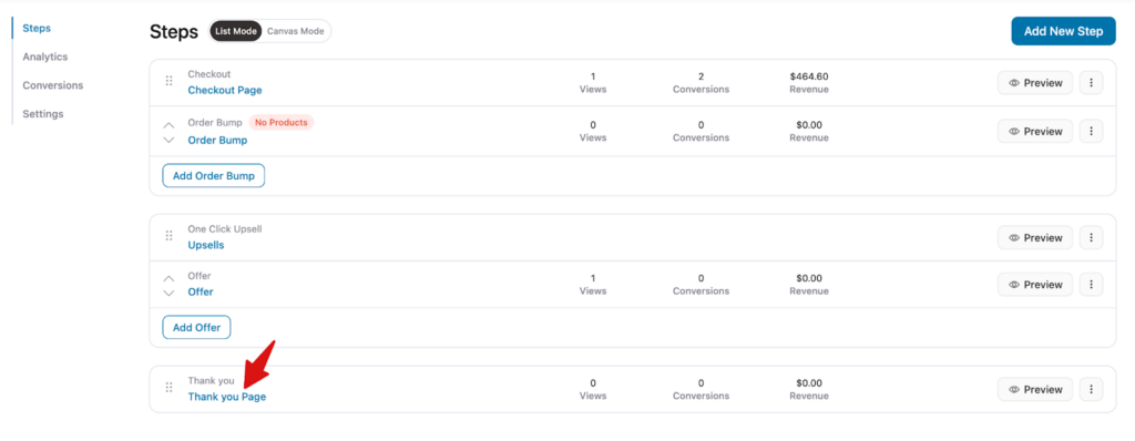 Next, go to any of your sales funnels and open the page where you want to add the tag. This could be the Landing, Checkout, Upsell, or Thank You page.