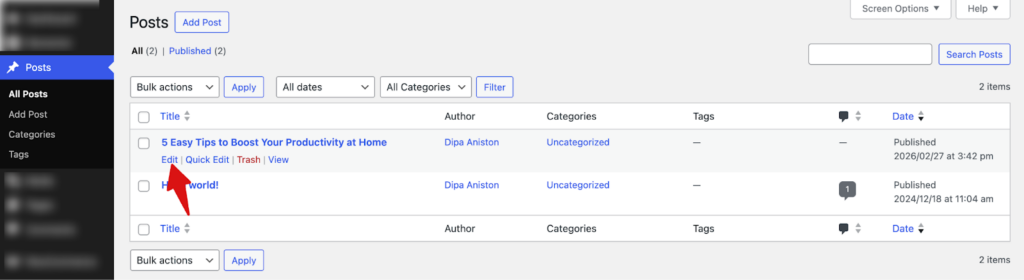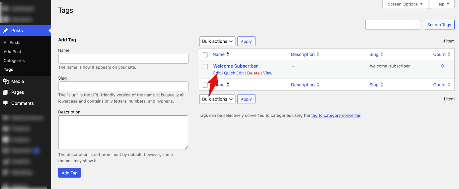 For this, navigate to Posts ⇒ Tags. Here, you can add any new tag or edit any existing tags.