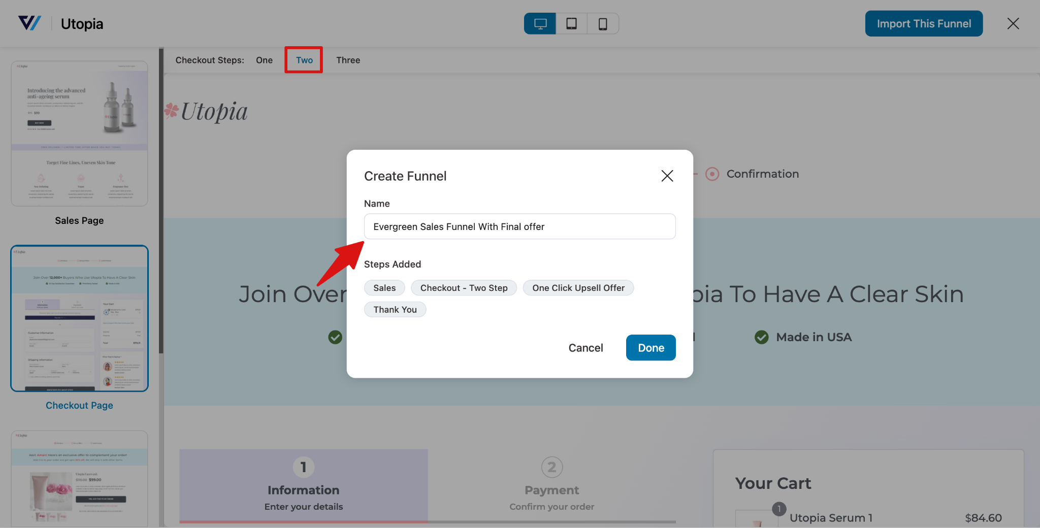 Here, select the funnel you like and import it. You can also select the steps you want in the checkout page while importing.