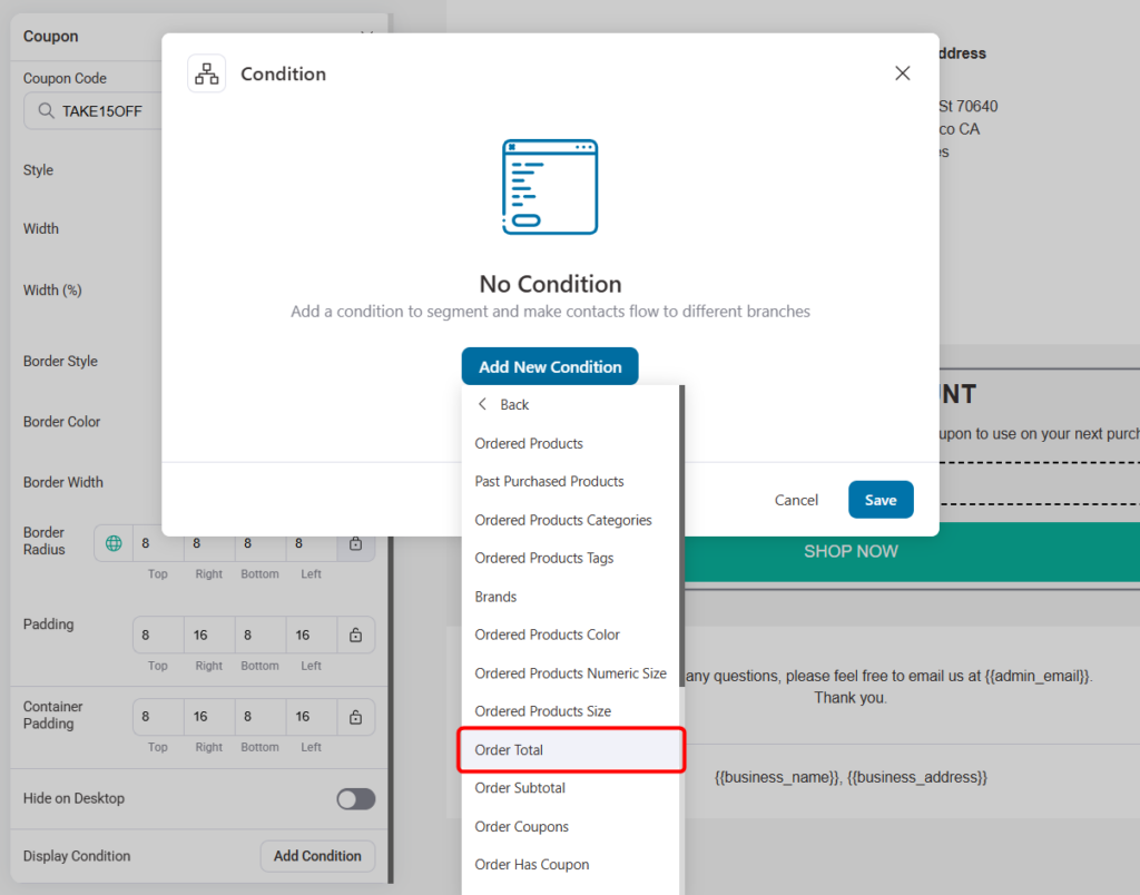 With FunnelKit Automations 3.7.0, you can now use conditional content inside the Visual Builder to control exactly what shows up in a transactional email and for whom.