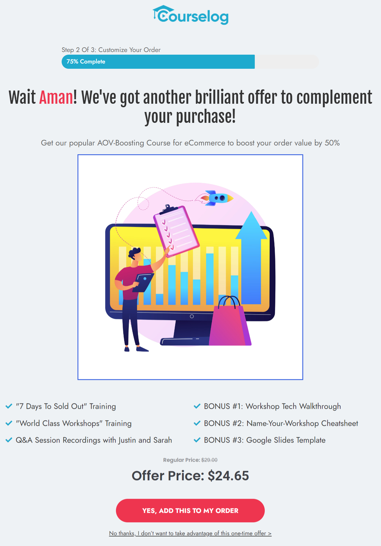 You can even add more than one product to the offer and more than one offer to the upsell page.